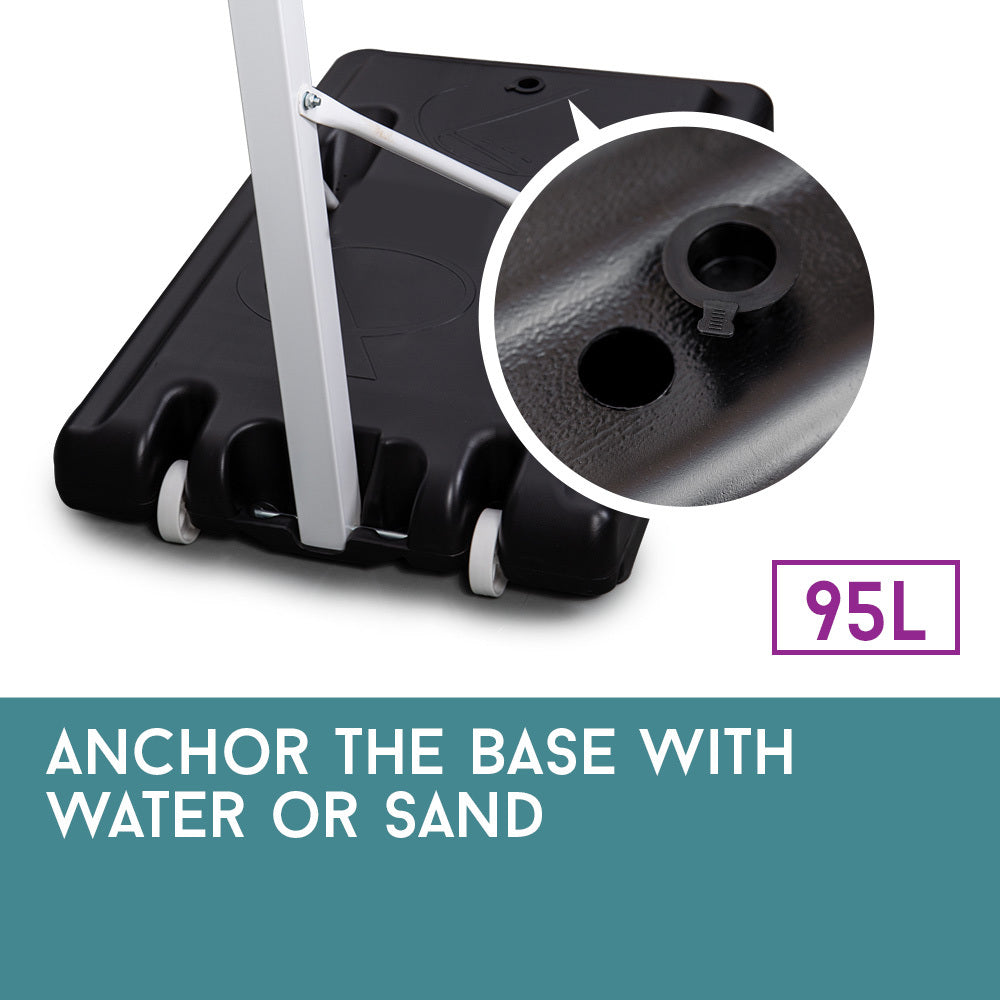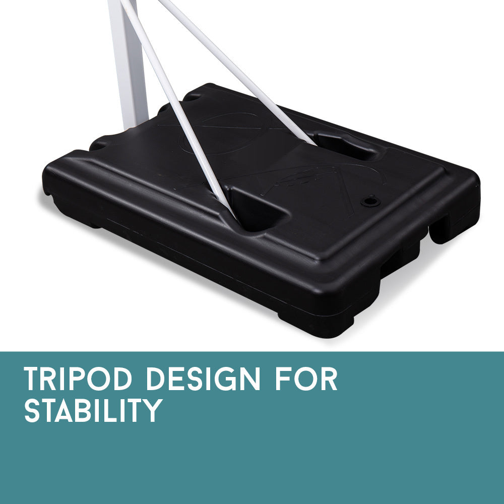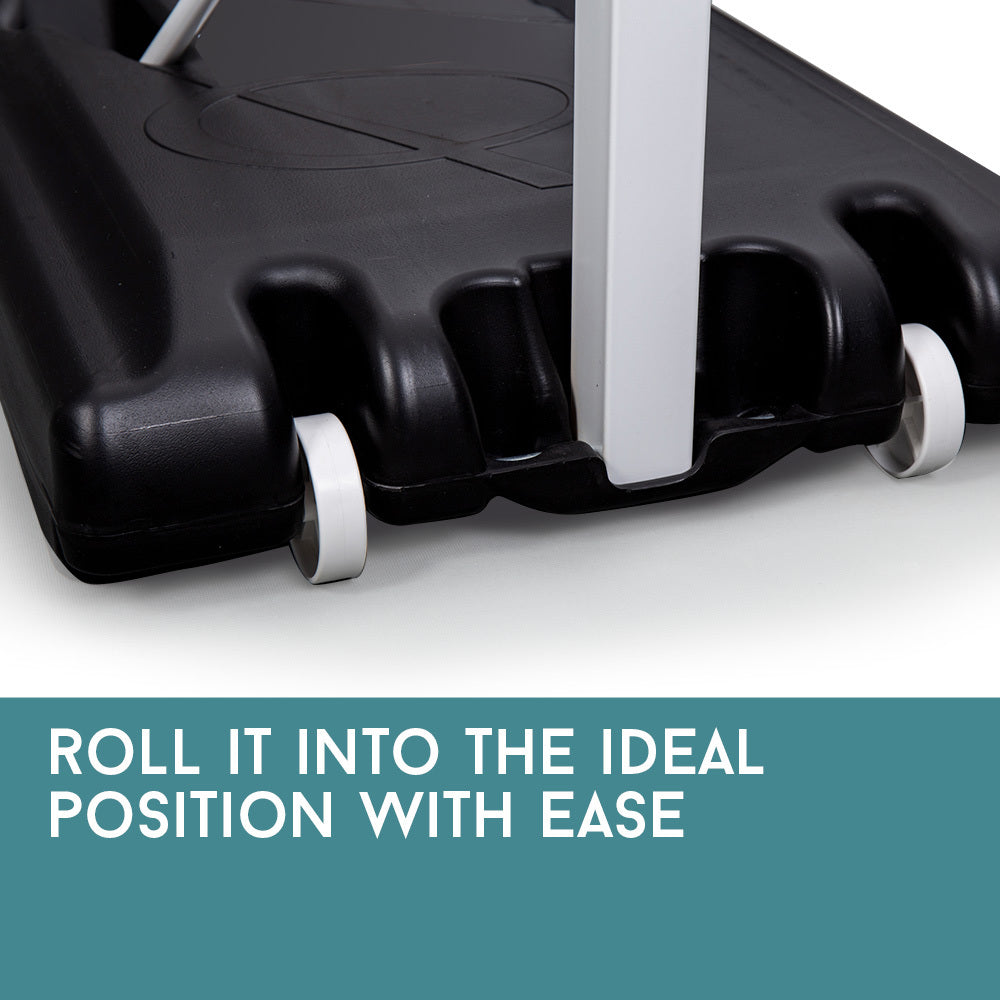 You can be sure that your fun will last, with easy and quick set up. The Dr Dunk 8.5ft Basketball Hoop System includes a 33" x 23" clear polycarbonate backboard, an adjustable steel pole, and a weighted mobile base on wheels that can take 90 litres of water for supreme stability. Set up and start shooting today.