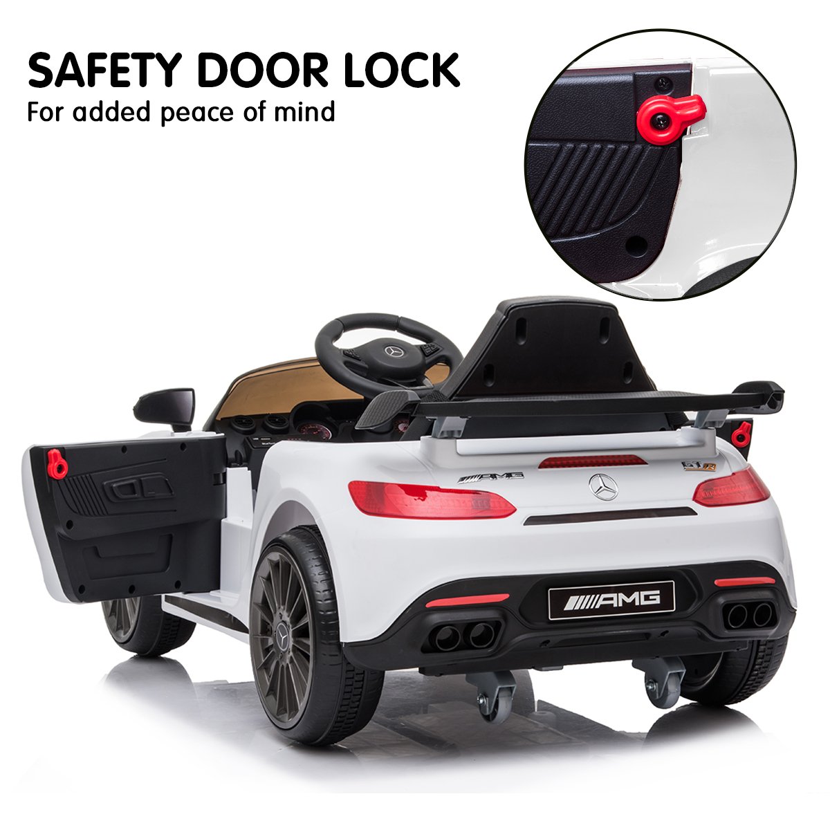 With the perfect balance of fun and safety, the Mercedes-AMG GTR Ride On Car is fun for the whole family.