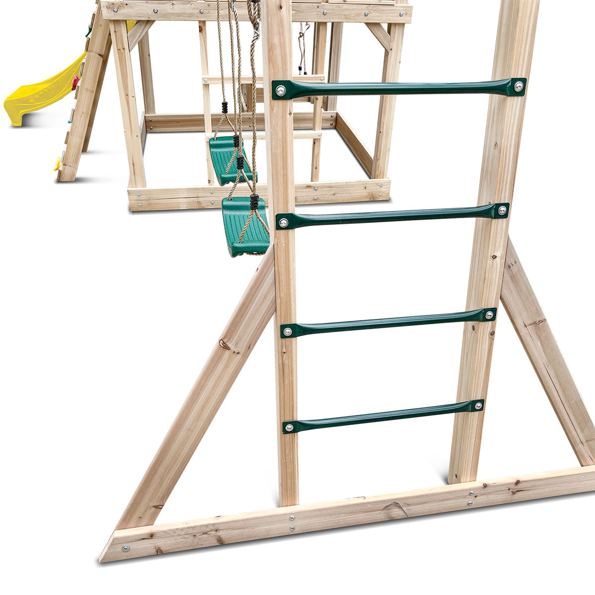 Youngsters will have endless adventures with the Kingston Play Centre and 2.2m Slide. This beautiful timber play centre & cubby house combo will have your little ones entertained for hours, with sandpit, monkey bars, swing set, climbing wall, climbing rope, and slide. Watch their creativity grow with a fun chalkboard and sink included.