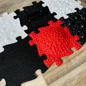 Tots Vision Sensory Playmats Set by Muffik is a wonderful 6-piece playset combining SOFT textures in High contrast colours Black, White and Red.