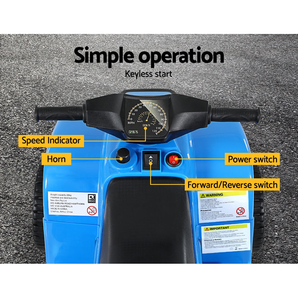Rigo Kids Ride On ATV Quad Motorbike Car 4 Wheeler Electric Toys Battery Blue